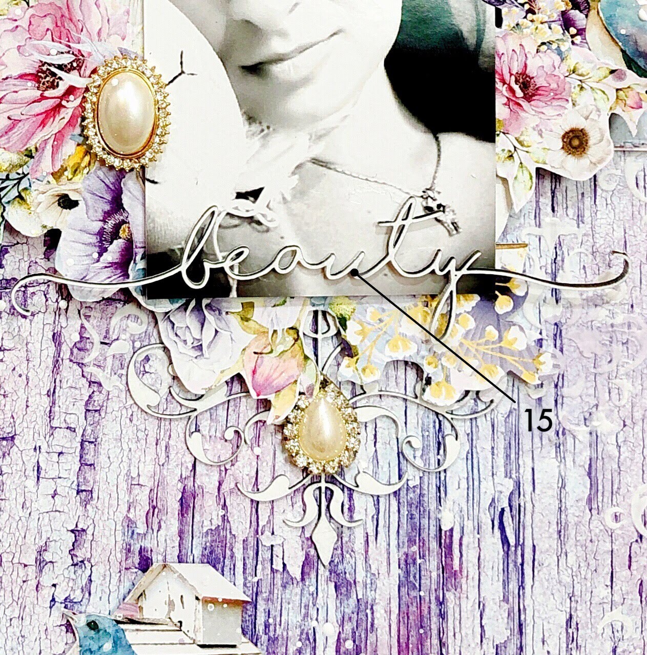 Also peeking out is one of the Lattice Leaves. They are here and also tucked in among the flowers on the bottom of the layout. I painted them with Viva 'My Paper World Paper Soft-Color in Light Moss Green.
