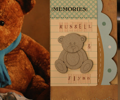 I started a tradition of taking a photo of Russell the bear and Max every month and I have kept it up. Now the tradition with Flynn has begun and here is my first layout for his album.