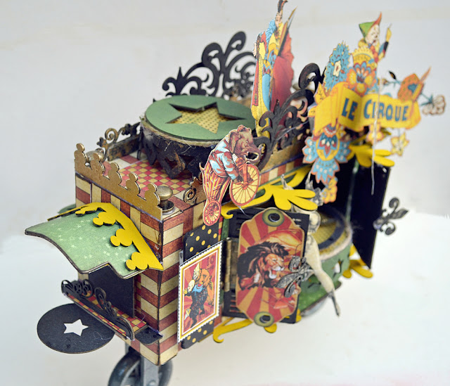 Each box has been altered in a circus theme and when joined together create a little 'Le Cirque' fun. The boxes could easily be decorated and embellished in any theme. With Christmas approaching a 'Polar Express' theme would also make for a lovely table centre piece for the Christmas table.
