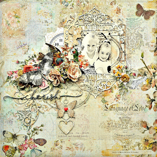 For my layout "Cherish", I have incorporated a few of the recently released chipboard pieces: