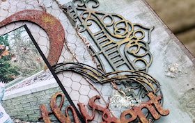 I decided to go over some of the chipboard and highlight with a dab of Vintage Wax Gold,