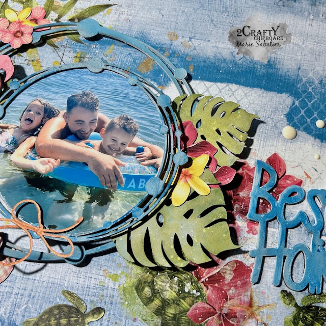 I make a cluster of embellishment on the right by adding these pretty leaves "Palm Leaves".