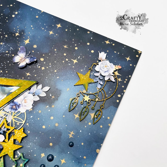 I'm really a fan of this "Frame Star With Stars" chipboard which seemed totally in keeping with the theme of this superb paper.
